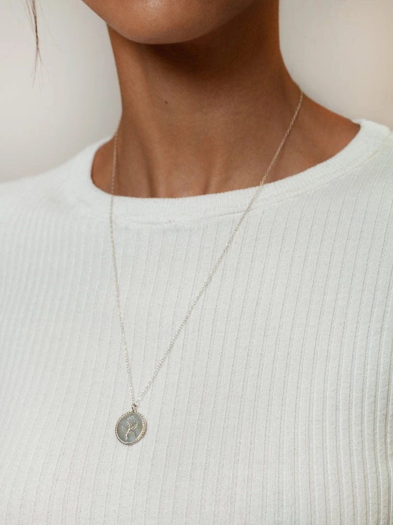 Wolf Circus engraved Rose Coin necklace sterling silver.