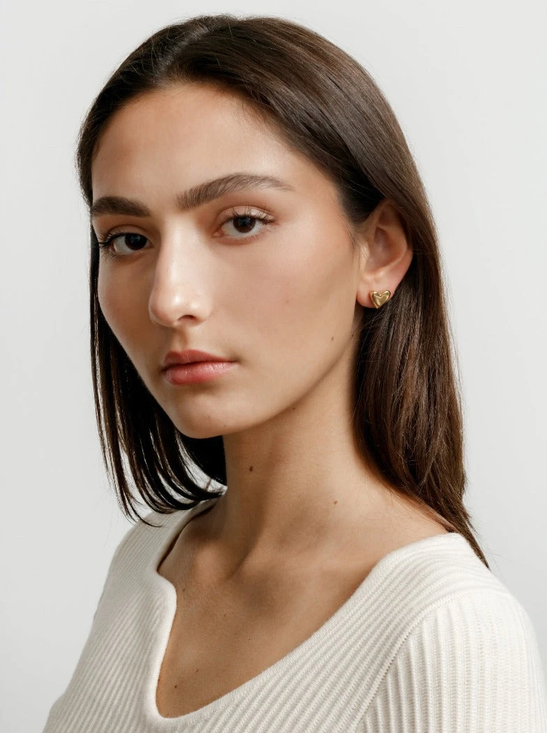 Wolf Circus small Grace heart studs in gold. Emanate love from head to toe. Carved by hand in 14k gold-plated.