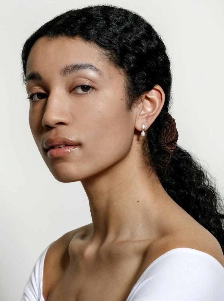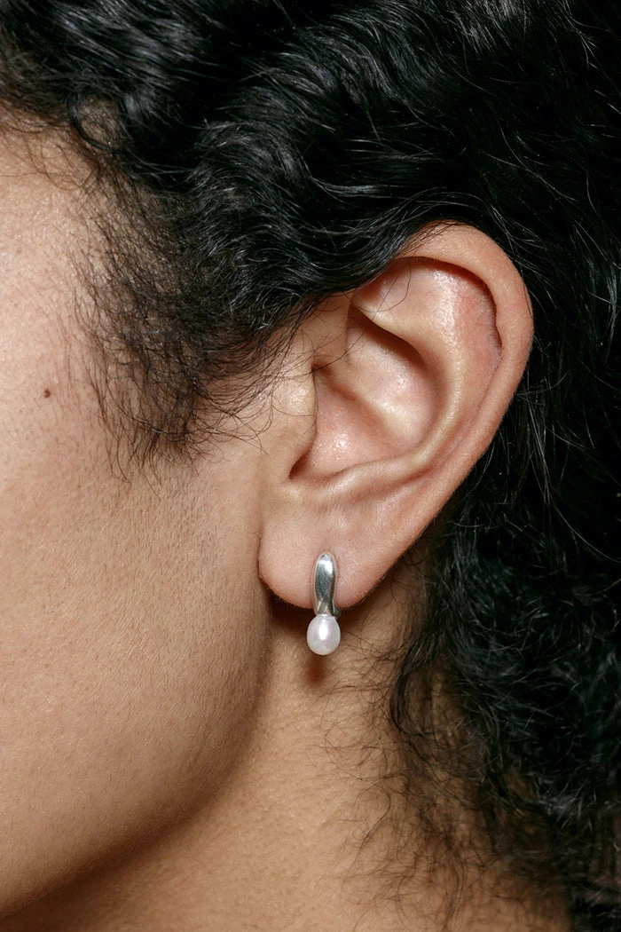 Wolf Circus silver Betsy huggy earrings are sculptural studs with a delicate pearl accent, Betsy was designed for the minimalist.