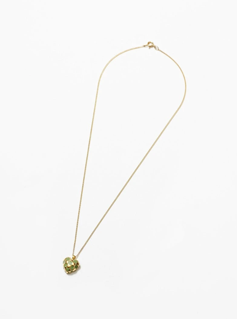 14k gold-plated bronze heart pendant with green resin.