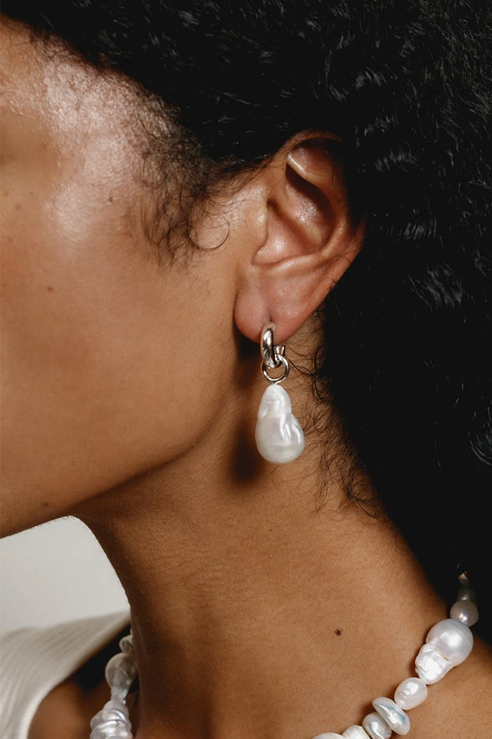 Wolf Circus solid sterling silver Suki hoops with freshwater baroque white pearl earrings.