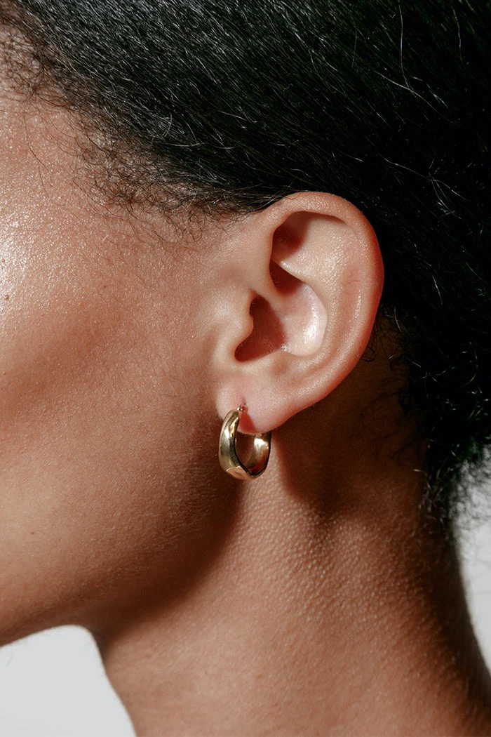 14k gold-plated bronze textured hoops with sterling silver posts.